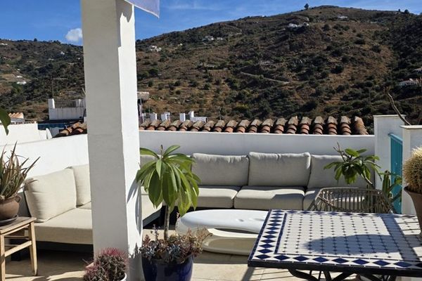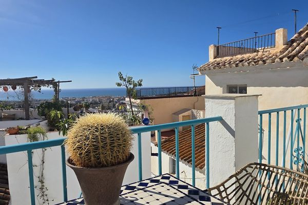 Sur le toit, la maison offre une grande terrasse avec vue à 360°, d'où vous pourrez profiter d'une belle vue sur la mer Méditerranée, la ville et les collines qui entourent Torrox.