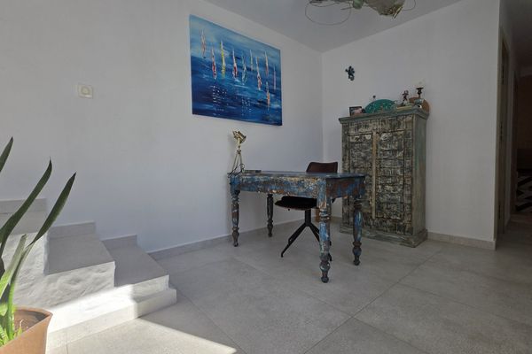À l'étage supérieur, la chambre principale dispose d'une grande armoire intégrée de style andalou et d'une salle de bain contemporaine aux lignes épurées et aux finitions design. Dans le couloir qui mène à la chambre se trouve un espace très agréable qui peut être utilisé comme espace de travail ou de bureau, idéal pour ceux qui ont besoin d'un coin tranquille à la maison.