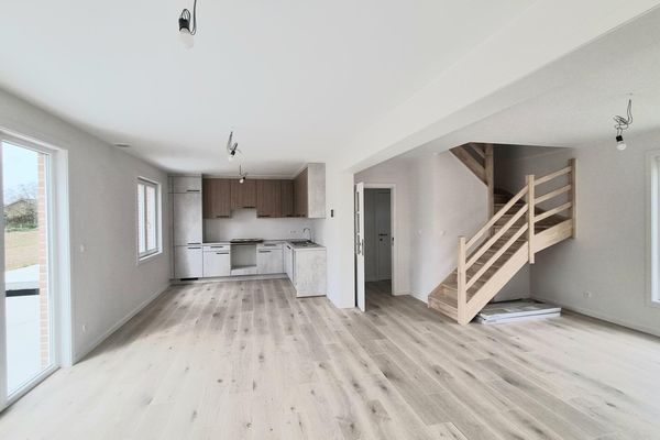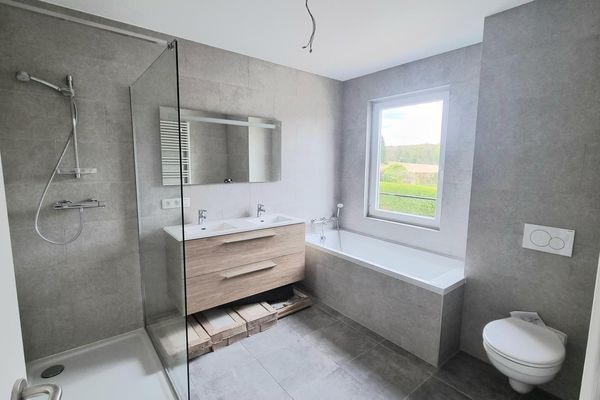 Maison neuve avec très beau jardin orienté OUEST. Cette nouvelle construction se compose d'un hall d'entrée, un local technique, un wc séparé et d'une belle pièce de vie avec cuisine équipée, terrasse. Au premier étage se trouvent 3 belles chambres et une SDB avec bain, douche, wc et double évier. Au deuxième étage, un beau grenier aménageable de 36 m2. Châssis double vitrage, chauffage par le sol au rdc. 10 panneaux photovoltaïques. Citerne d'eau de pluie. A visiter sans tarder !!!